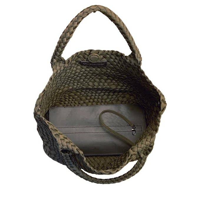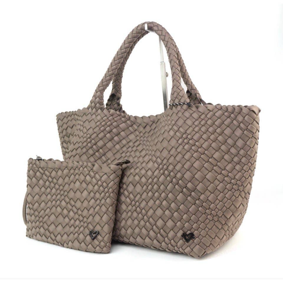preneLOVE's NEW premium line of hand-crafted, hand-woven neoprene totes are an essential 'must-have' for serious handbag lovers. Our woven collection uses assorted sized strands of neoprene for a more modern, distinctive and sophisticated look while also enhancing its overall durability due to the added 'flex & stretch' of the bag.