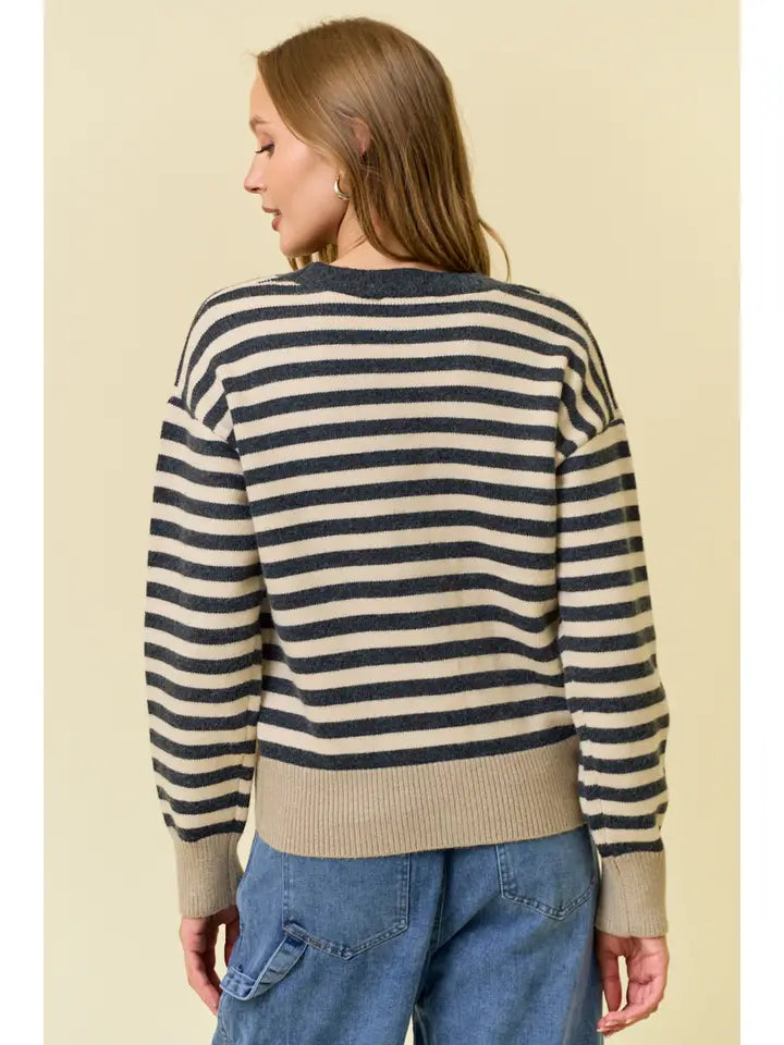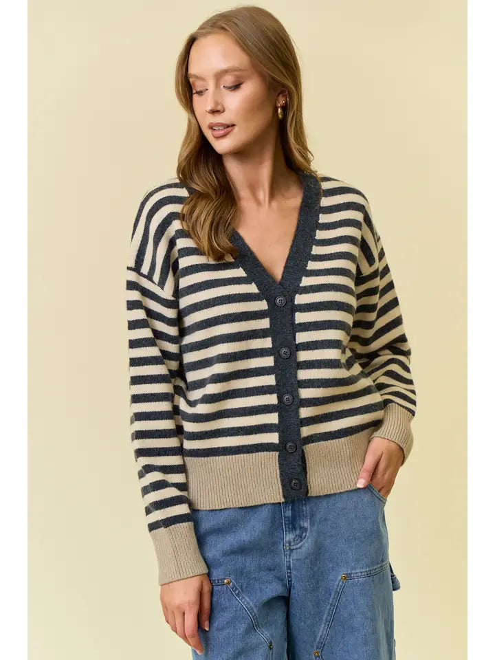 Button Stripe Cardigan