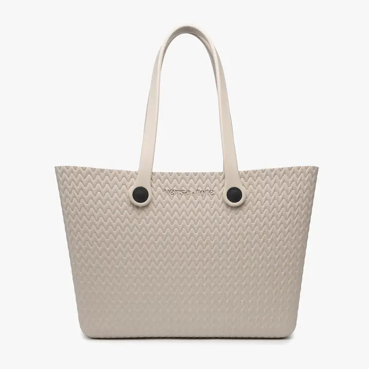 Our best-selling tote, now in a textured style! EVA tote bag Lightweight, durable, and waterproof. Removable straps, washable interior. Pair it with a set of our interchangeable straps (sold separately) Or add a bag organizer. Made of EVA rubber.