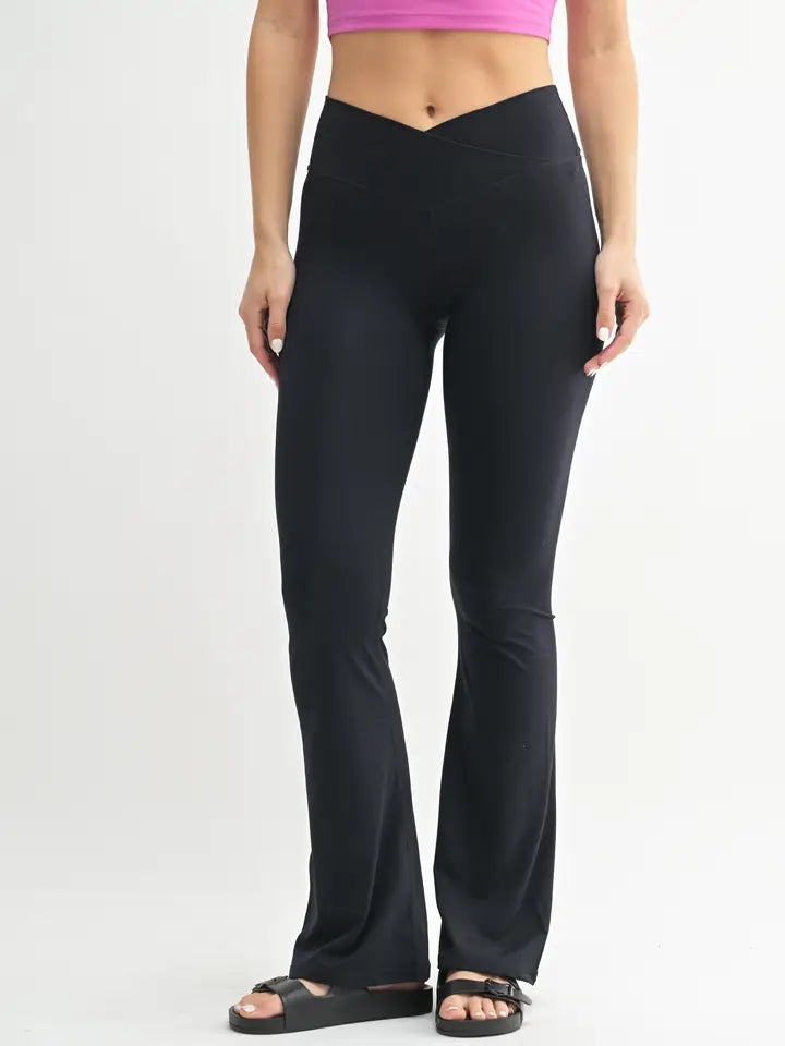 Meet your new go to: the Venice Yoga Pants. Designed with a flattering crossover waistband and a soft poly/spandex Venice fabric blend, these high waisted flares move with you while keeping you comfortable all day long. The flared leg cut gives extra mobility (and style points), making them more than just yoga pants.