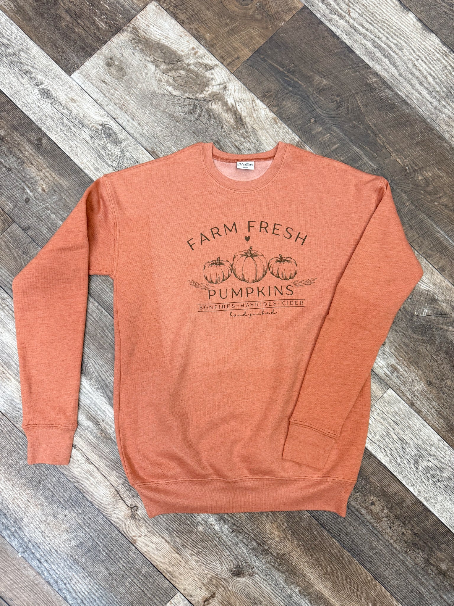 The sweatshirt you’ll live in all season long. Our Farm Fresh Pumpkins crewneck is designed and printed in-house with love, making it a true fall favorite.