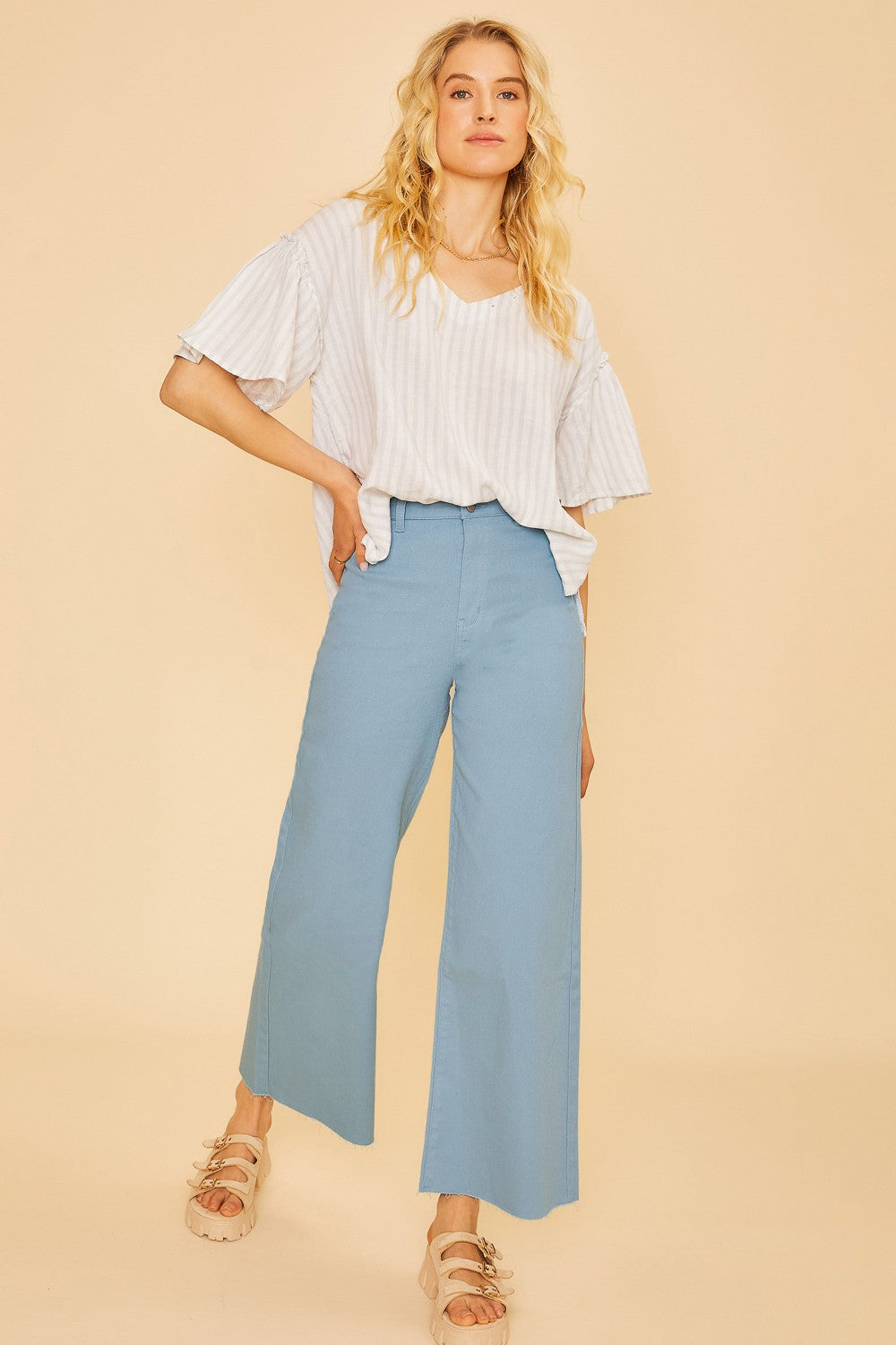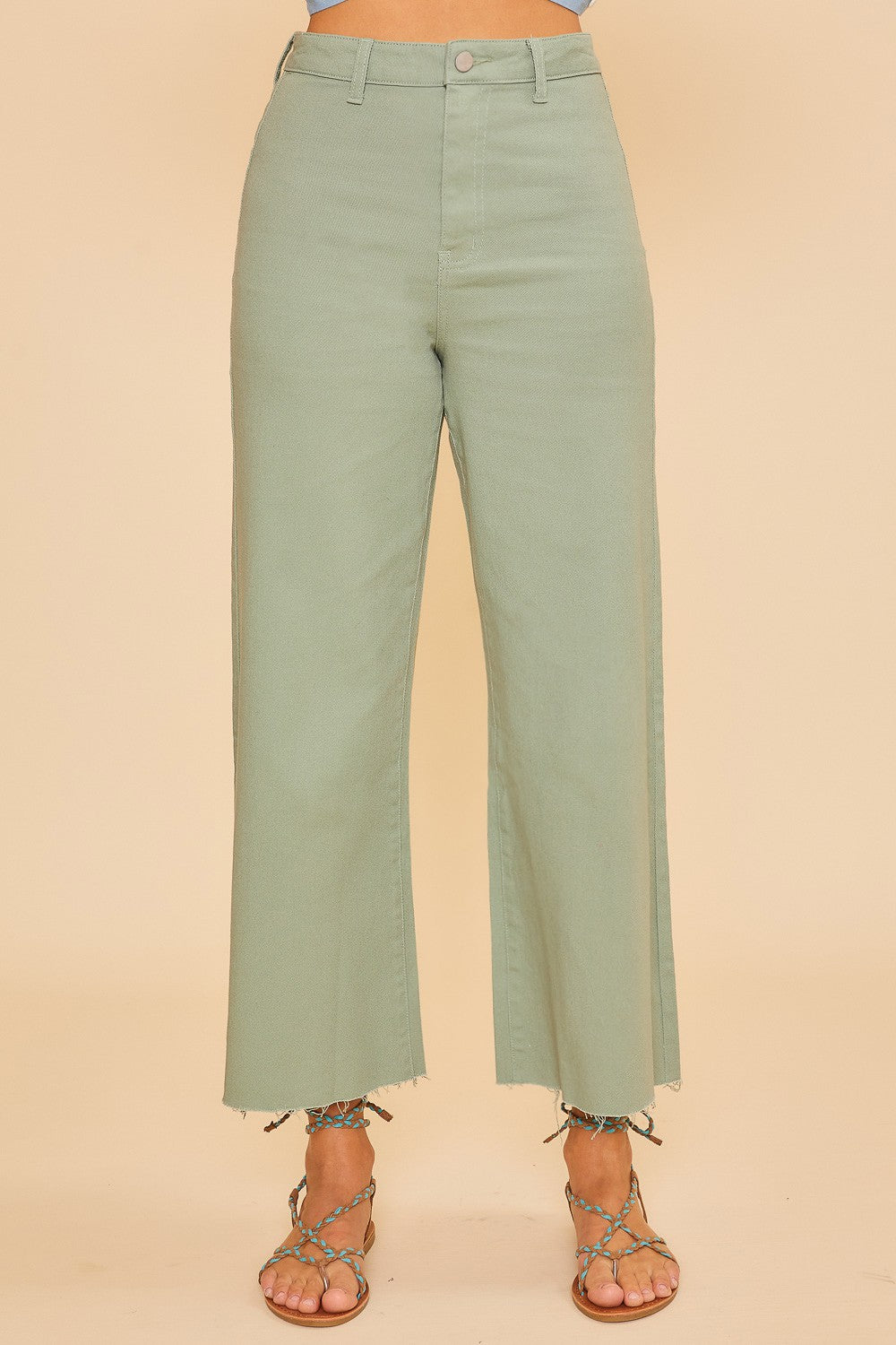 Stretch high waist cropped wide leg denim. No front pockets, only back pockets. Clean cut hemline. Great stretch material with a variety of colors! This denim is designed to provide a flattering fit and comfortable stretch for any figure. Its timeless style is perfect for any occasion - you'll create a stylish look with ease.