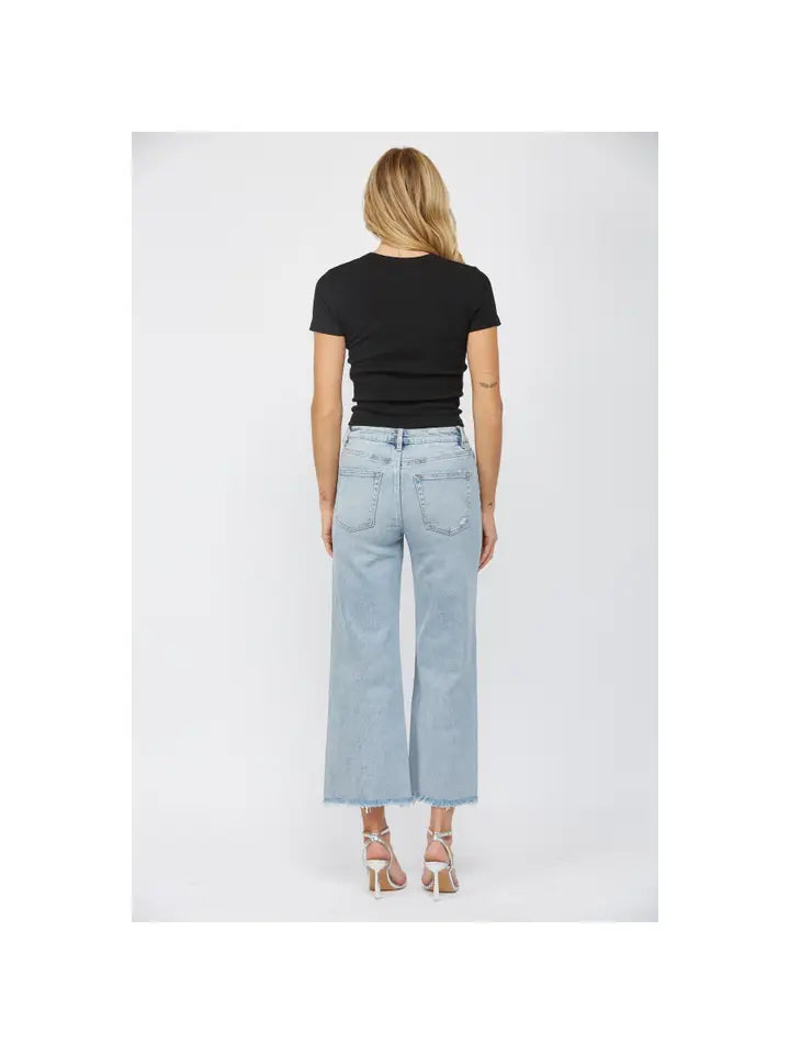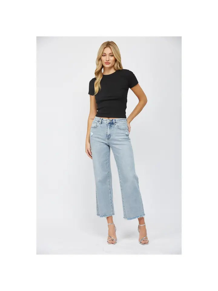 Experience a new level of comfort and style with Jean Mica High Rise Ankle. Elevate your look with the perfect combination of sleekness and flair in these Wide Leg jeans.