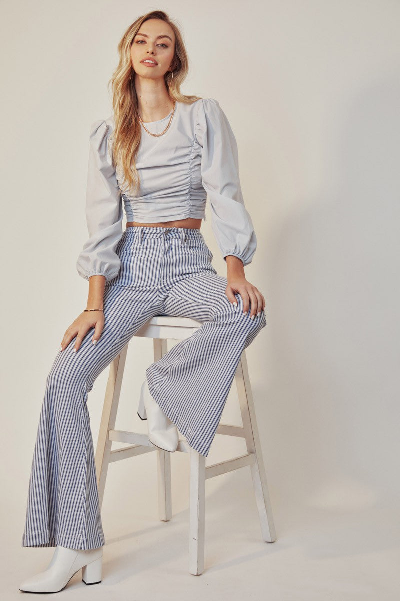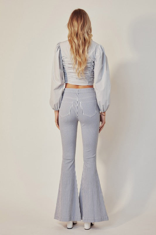 HIGH RISE FRAYED HEM SUPER FLARE.