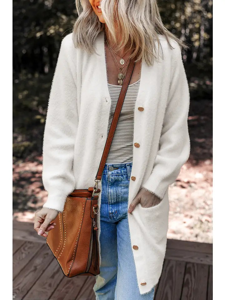 Elevate your wardrobe with this classic solid color cardigan sweater, designed for effortless style and cozy comfort.