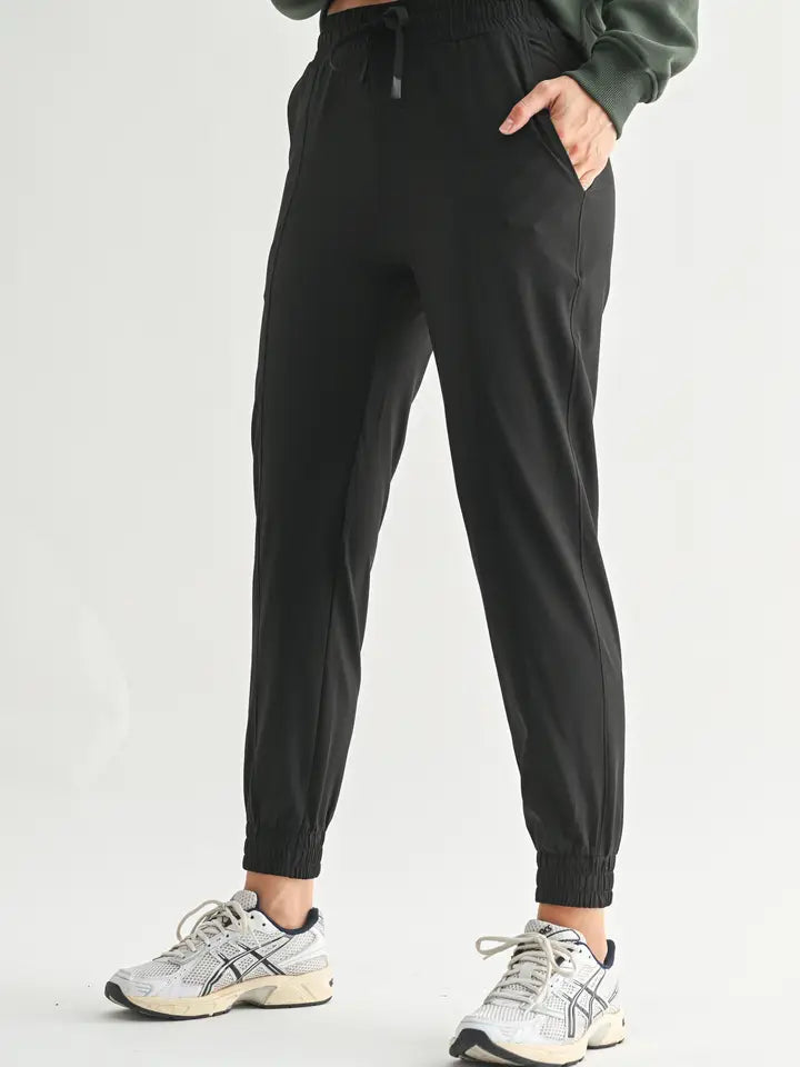 The 7/8 Length Joggers are sleek, sporty, and made for every kind of busy day. Designed with a flattering ankle length cut, these joggers feature slanted side pockets, an elastic waistband with drawstring closure, and cuffed ankles for a relaxed but pulled together look.