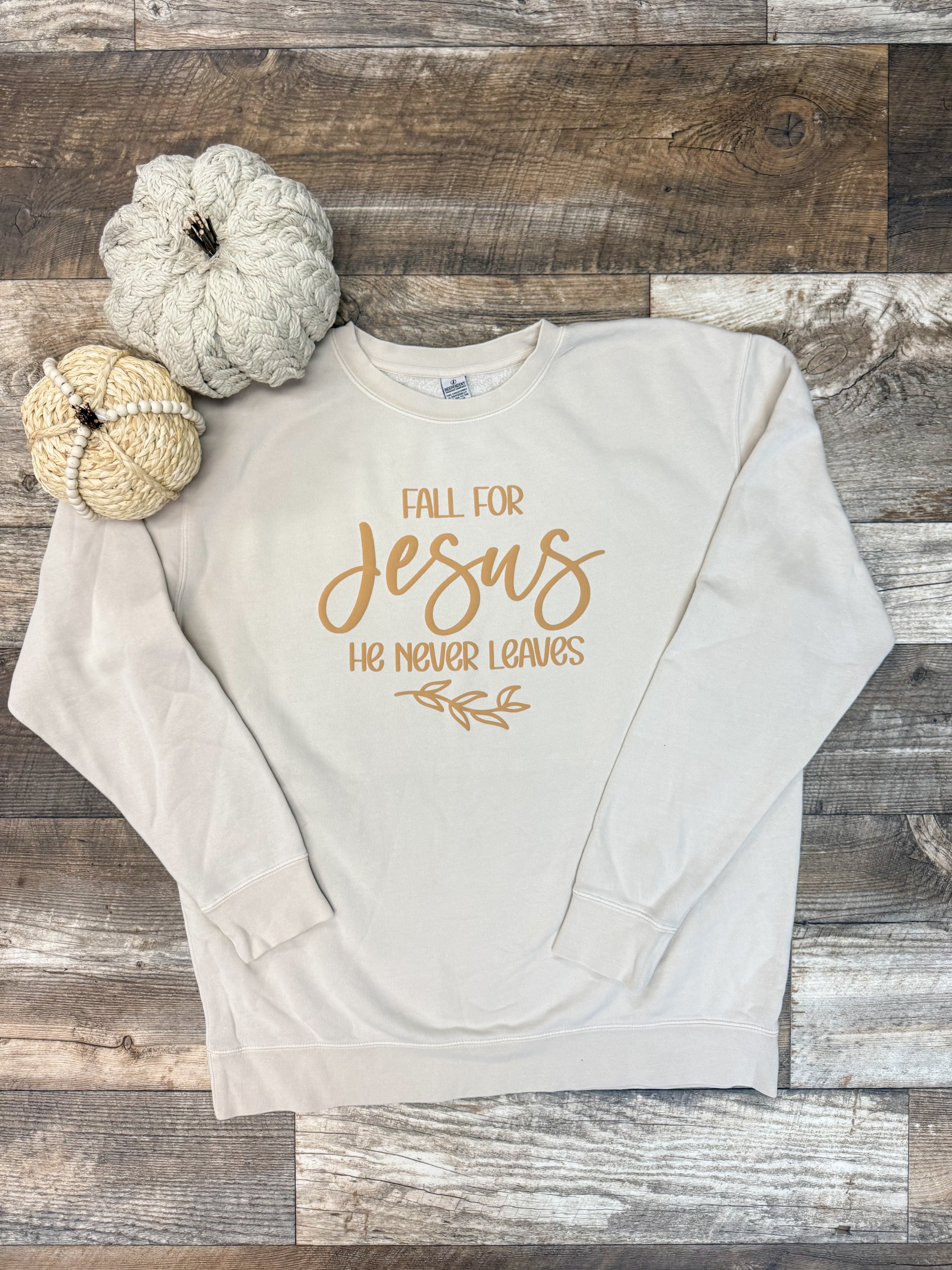 Cozy up this season with a message that never goes out of style. Our Fall for Jesus, He Never Leaves crewneck is designed and printed in house, making it a true Ground North exclusive. Available in a warm sand cream and rich autumn brown, this sweatshirt blends seasonal style with a faith filled reminder.