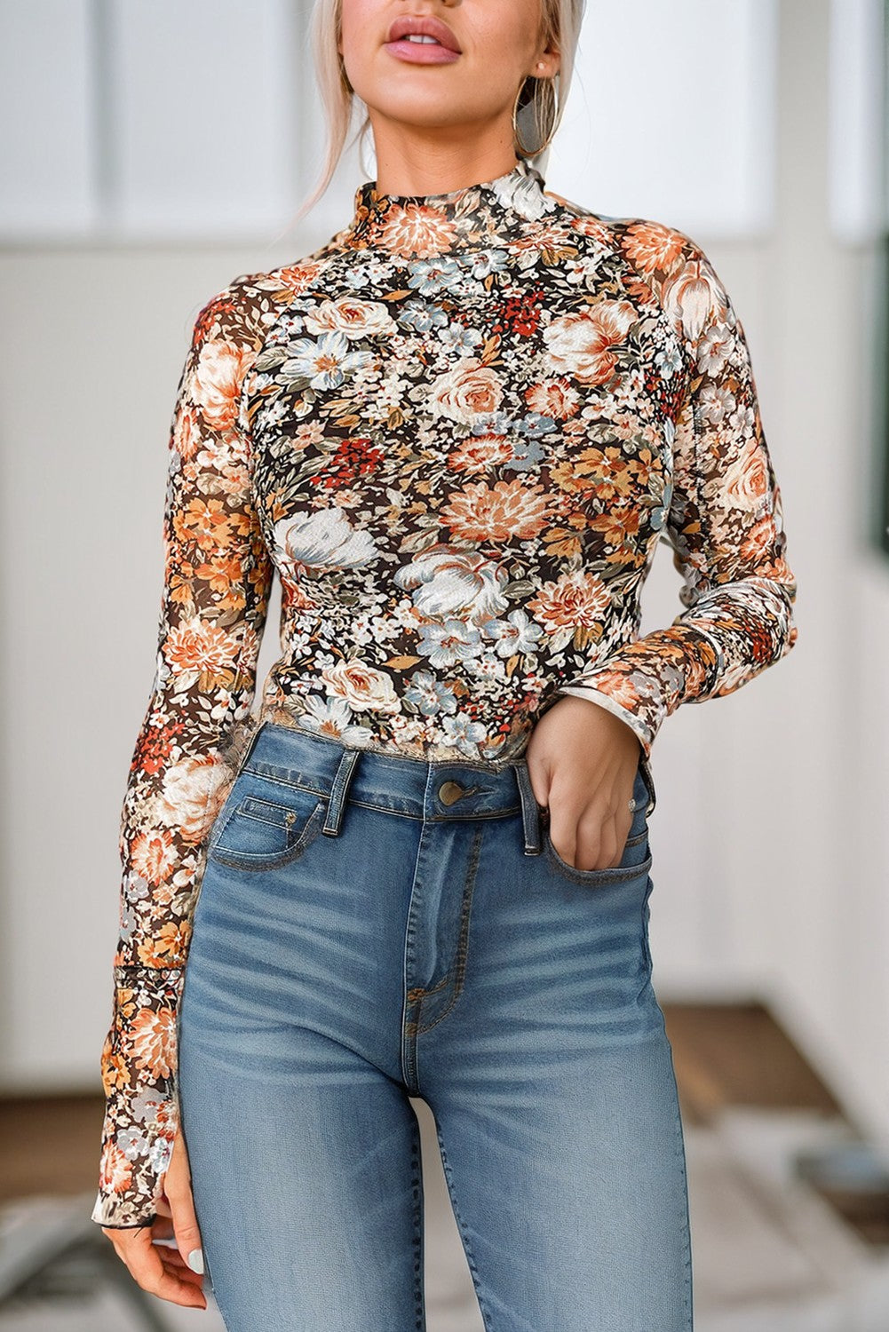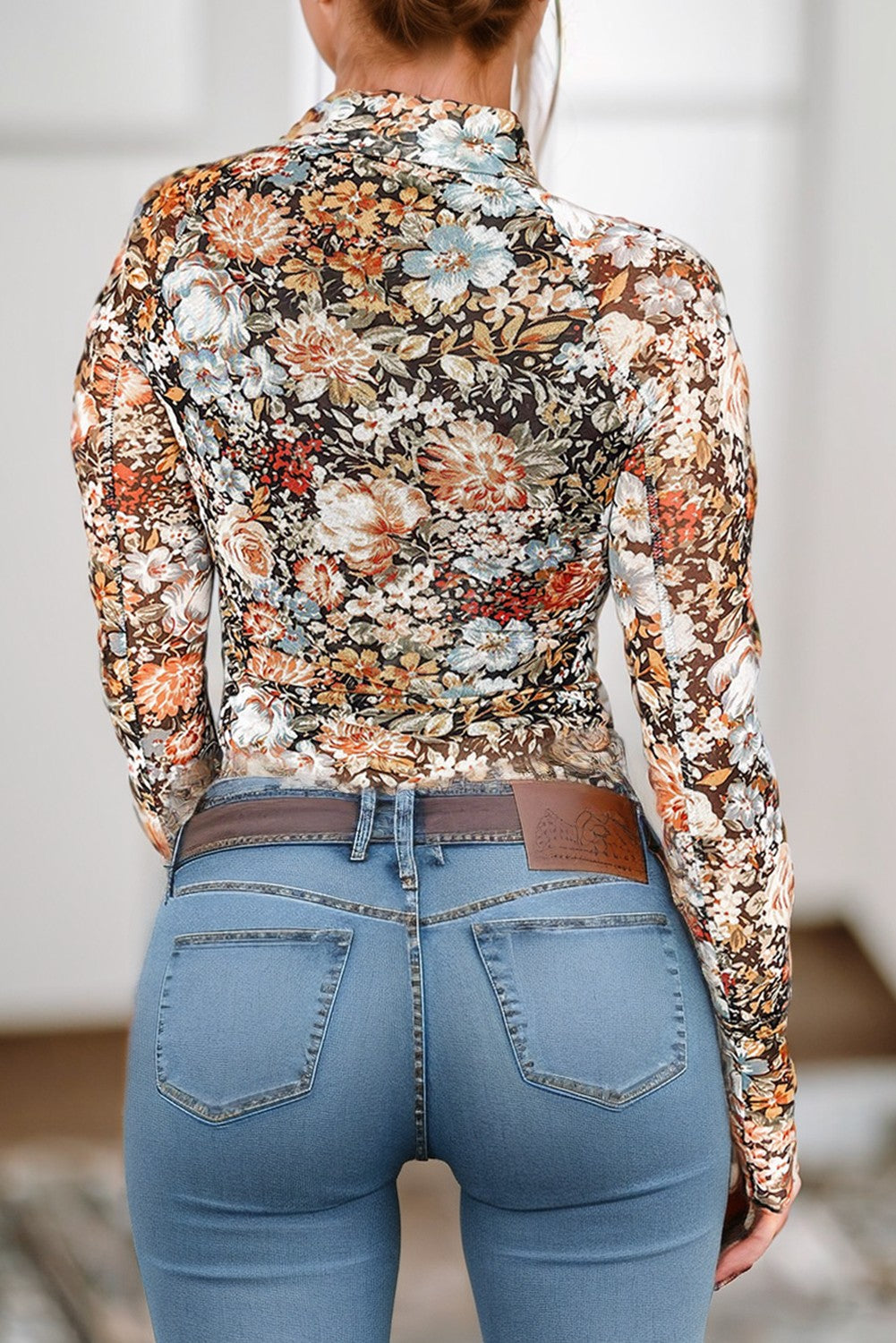 Floral mesh Long Sleeve Top