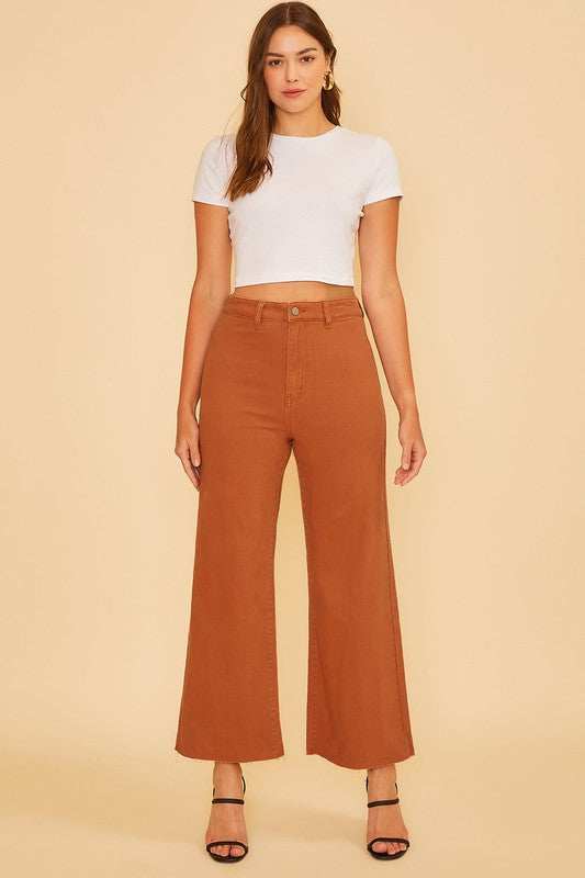 Experience the perfect blend of comfort and style with these Stretch High Rise Wide Leg Cropped Denim Jeans. Crafted from stretch denim, they feature a high-rise fit, wide legs, and a clean-cut hemline. Designed with only a back pocket and no front pockets, these jeans offer a sleek, modern look that elevates any outfit.