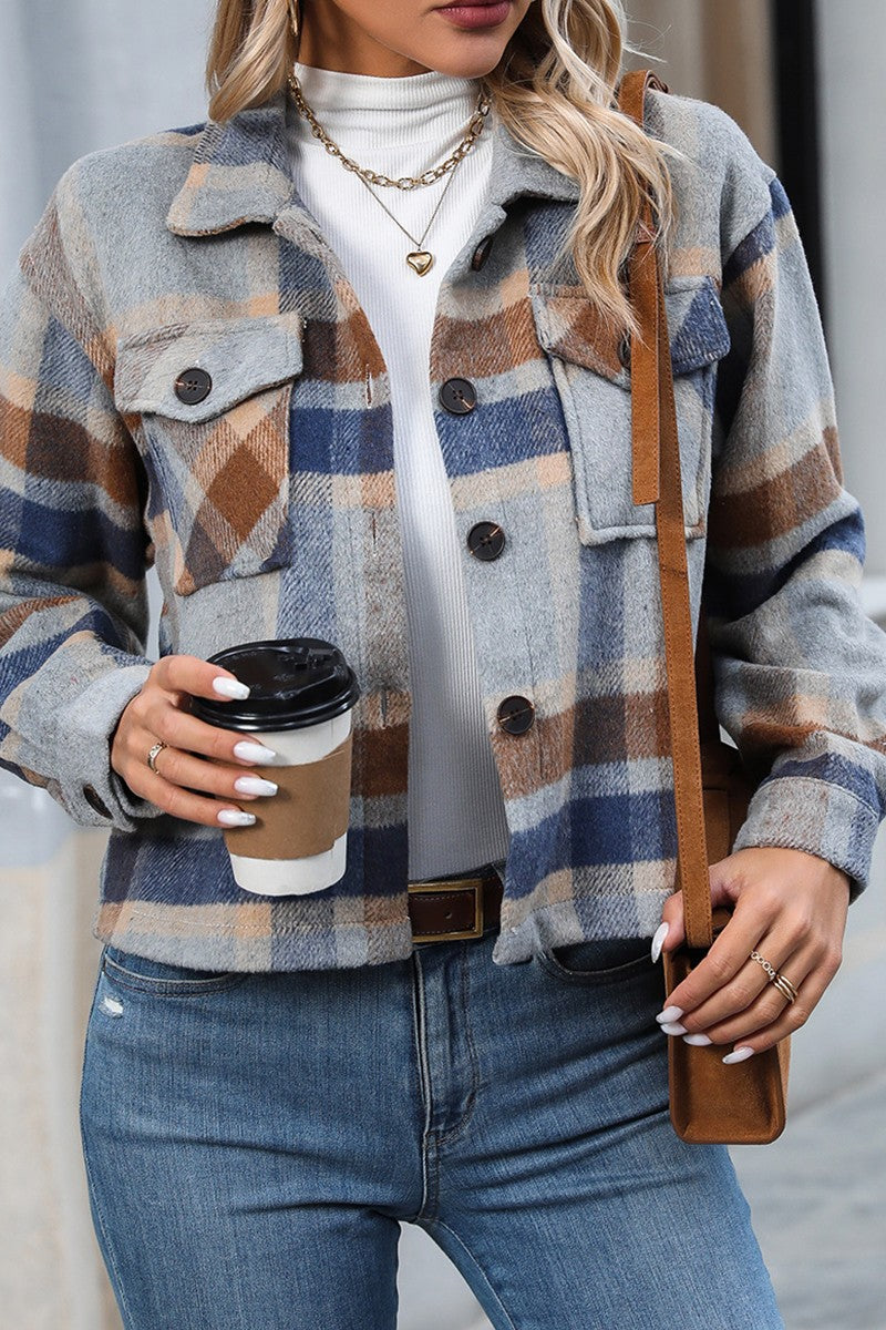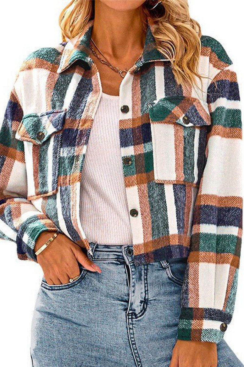 Discover the ultimate must-have for your wardrobe with our Plaid Pocket Crop Flannel Coat! Stay warm and stylish this season with our trendy and versatile coat made from high-quality flannel. Perfect for any occasion, this coat is a must-have for anyone who wants to make a fashion statement. Upgrade your wardrobe now with our Plaid Pocket Crop Flannel Coat!