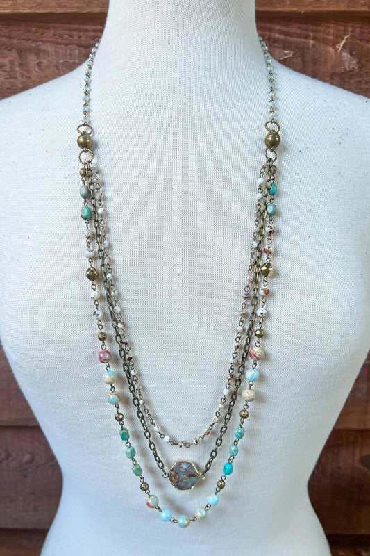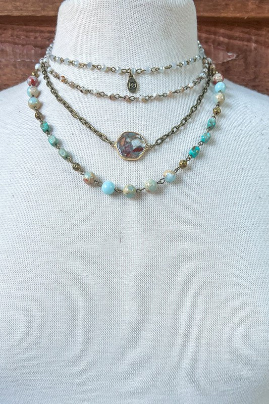 This unique piece of jewelry can be worn 5 different ways! The magnetic closure allows you to adjust this piece to your liking. You can wear it as one long necklace with the bottom piece being 3 layers of beautiful beading. Take the top piece and wear it as a bracelet or a choker necklace. You can wear each piece separately or together to make a 4 layer necklace.