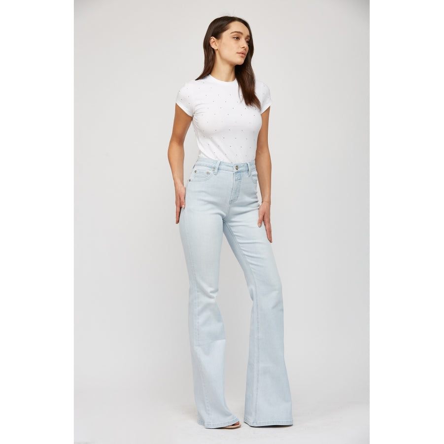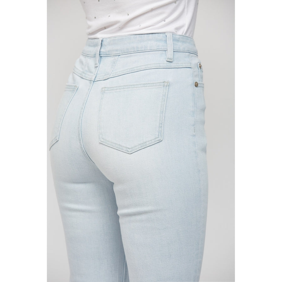 Experience a new level of confidence and style with Jean Mica Super High Flare. Elevate your look with the ultimate combination of a high rise fit, tummy tucking technology, and a flattering flare leg. Available in stunning Beau Blue to add a pop of color to your wardrobe.
