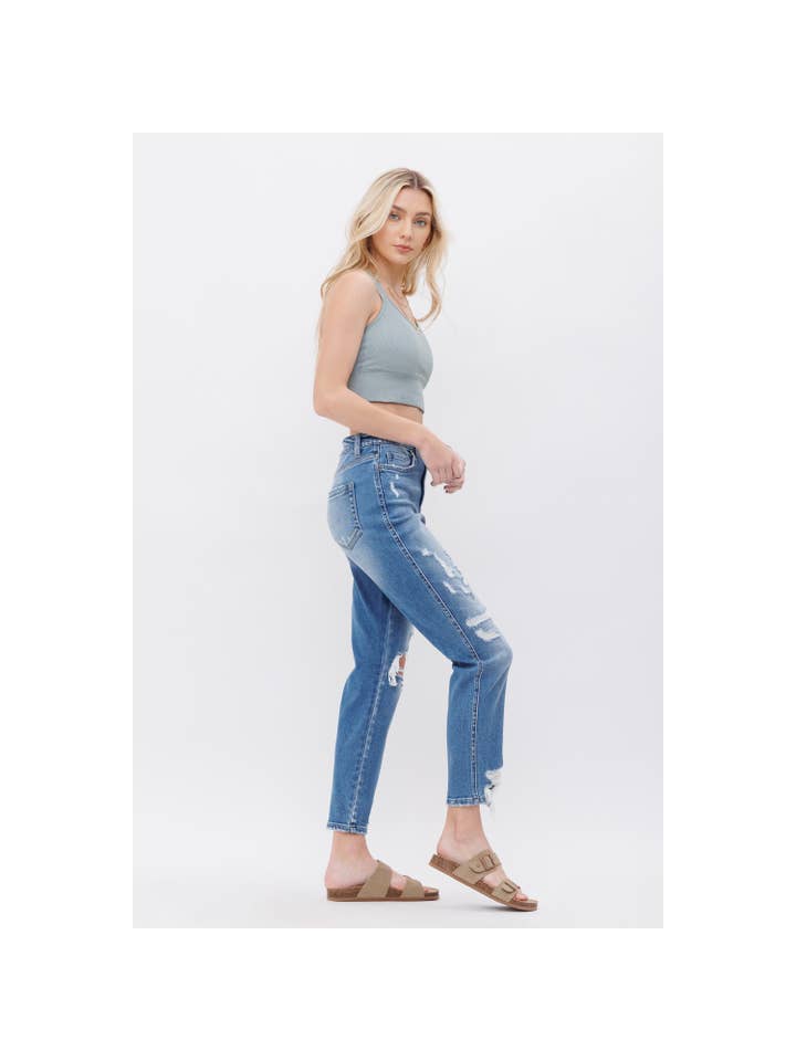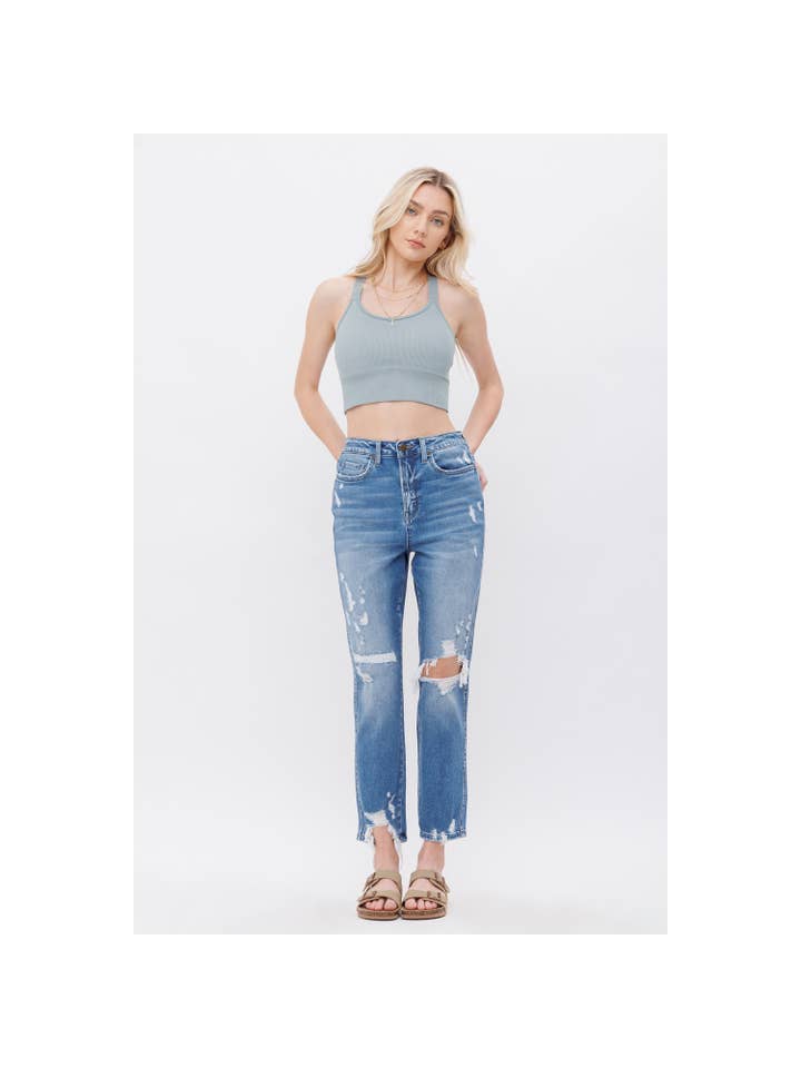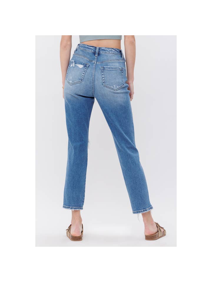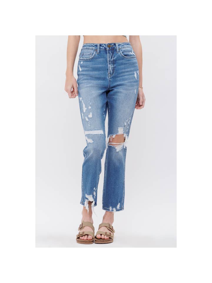 Experience the ultimate comfort and style with Jean Mica Super High Tapered. These stretchy, high-rise jeans feature a unique mending QUADY design that will make you stand out from the crowd.