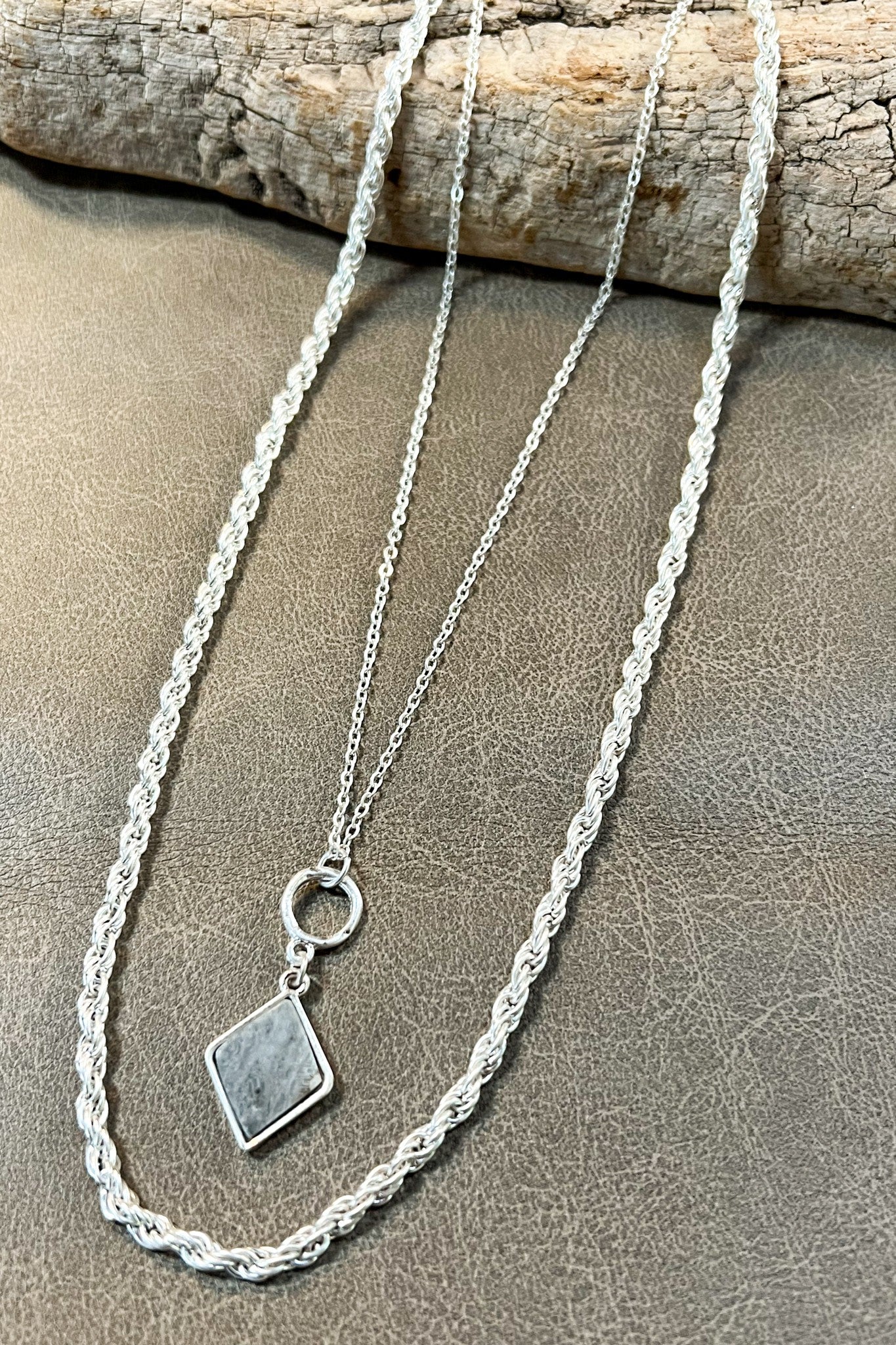 This Jessie Necklace Set features two elegant necklaces: a 16" cable chain adorned with a sparkling diamond pendant and a 20" rope chain. Both necklaces come with a secure lobster claw clasp and a 3" extender for adjustable wear, offering versatile style and timeless sophistication.