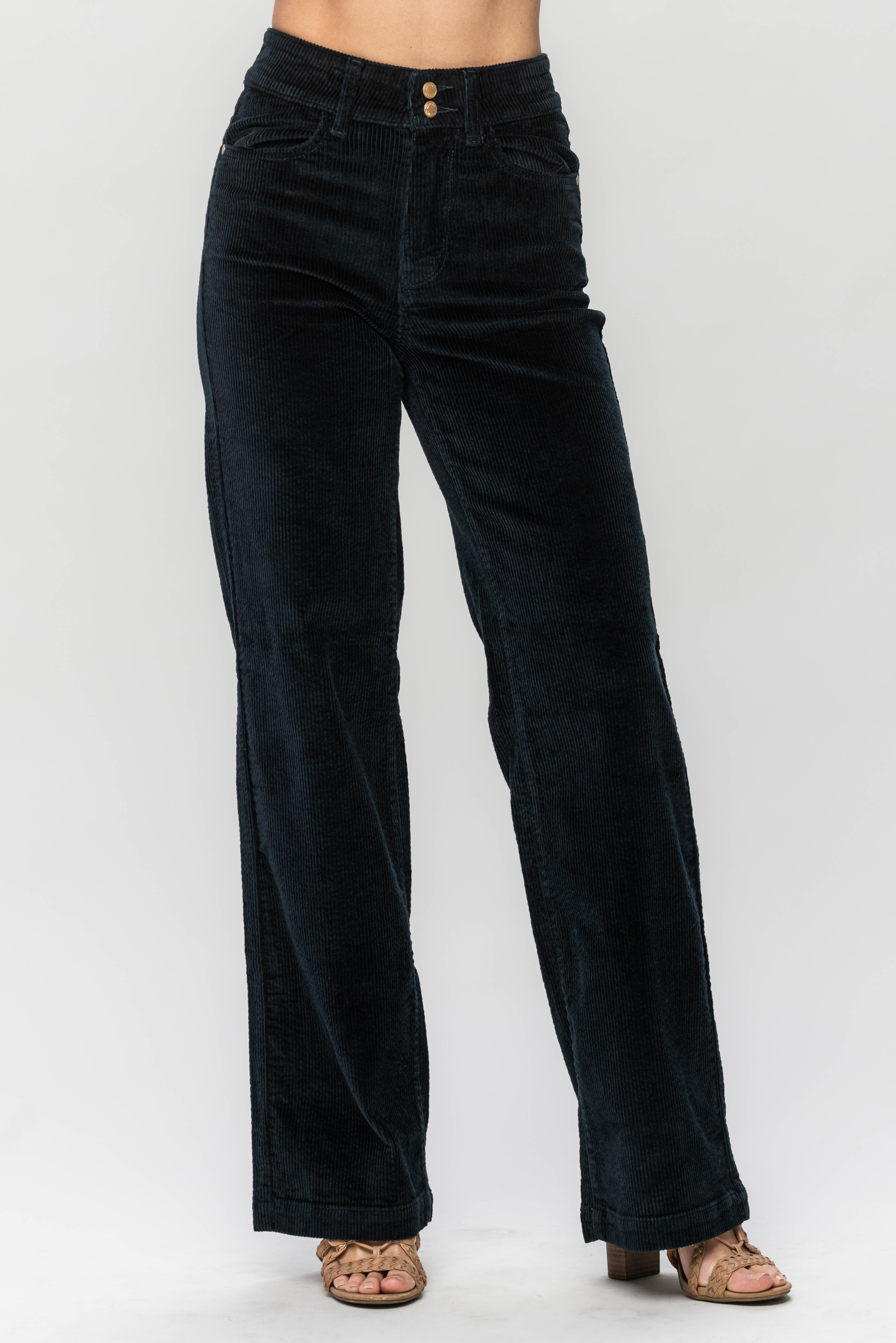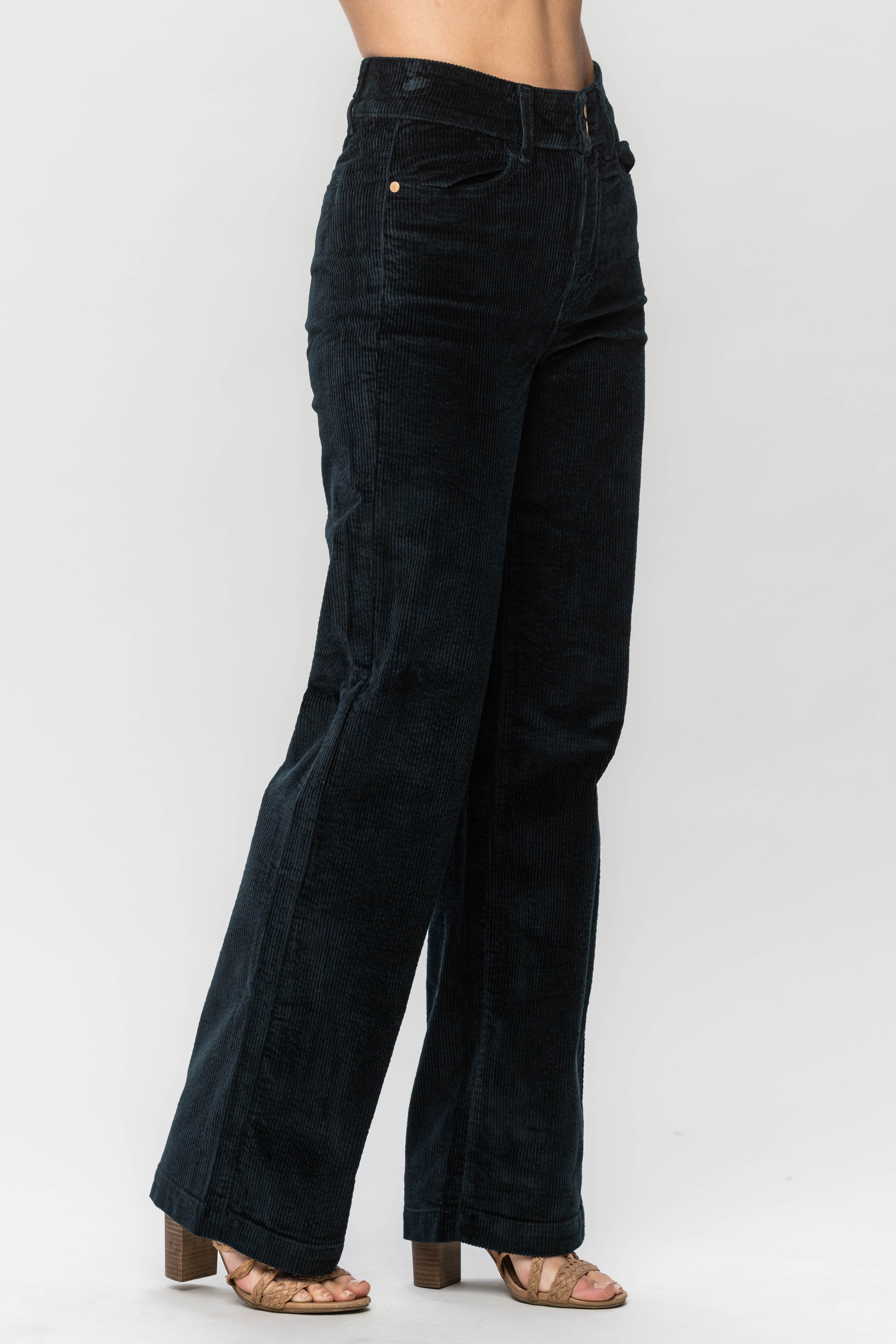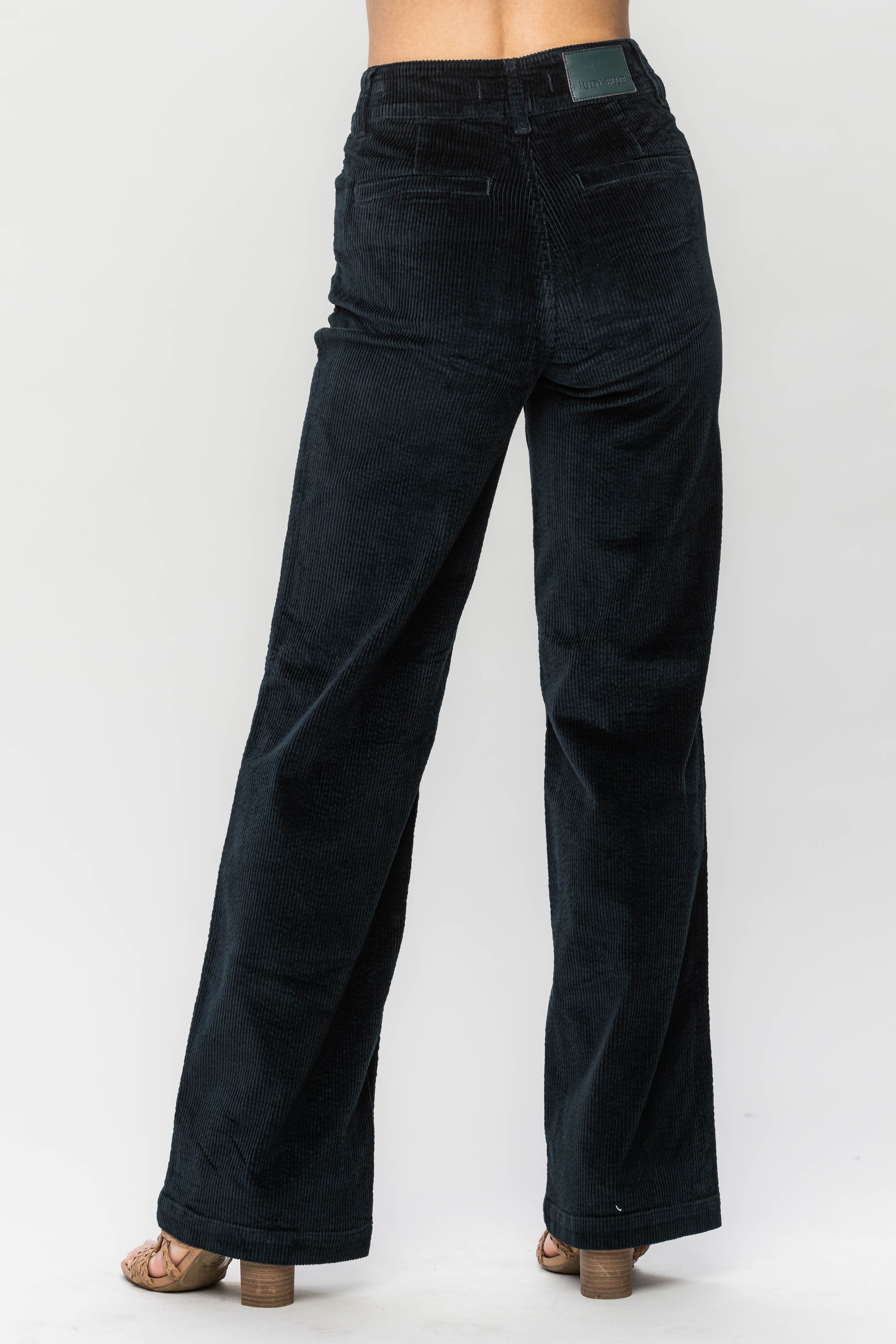 High waist overdyed corduroy trouser pant with a wide leg. Dark green color is on point for fall. Stride in with confidence - these jazzy trousers are ready for anything! With a high waist and statement-making silhouette, you'll ooze with chic style from morning to night.