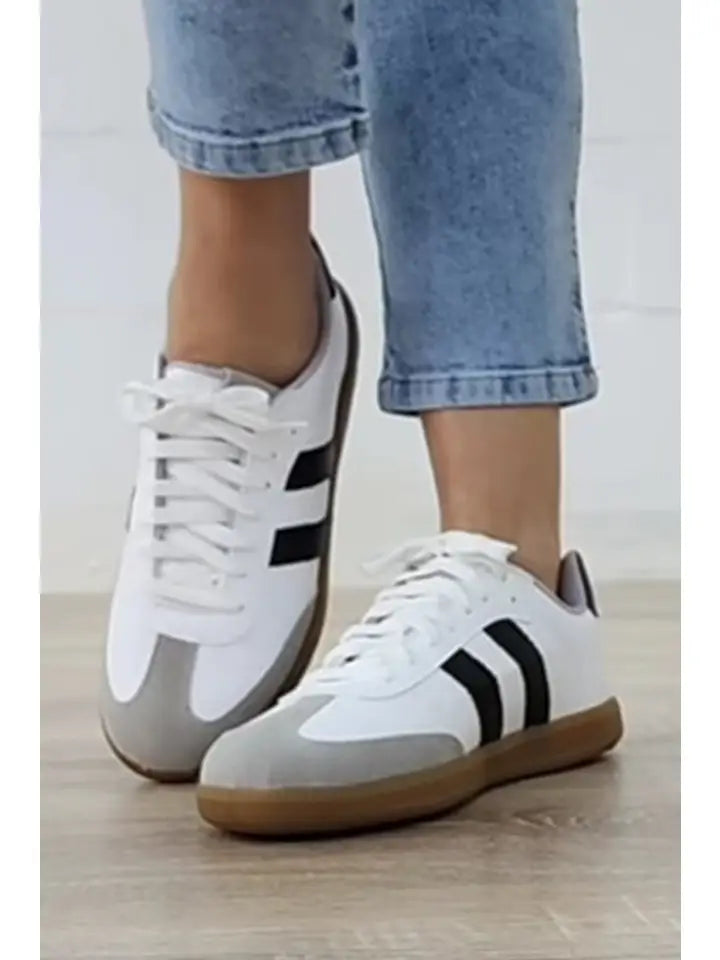 Material 100%Polyester+100%TPR Size (US 6-10)37-42 Style Casual Pattern Striped Occasion Daily 👞 Stay trendy with the stylish lace-up design. 🎨 Unique striped pattern for a touch of flair. 👣 Comfortable flat sole for all-day wear. Size Chart (INCH) Size Foot Length 6(37) 9.3 7(38) 9.4 8(39) 9.6 8.5(40) 9.8 9.5(41) 10 10(42) 10.2