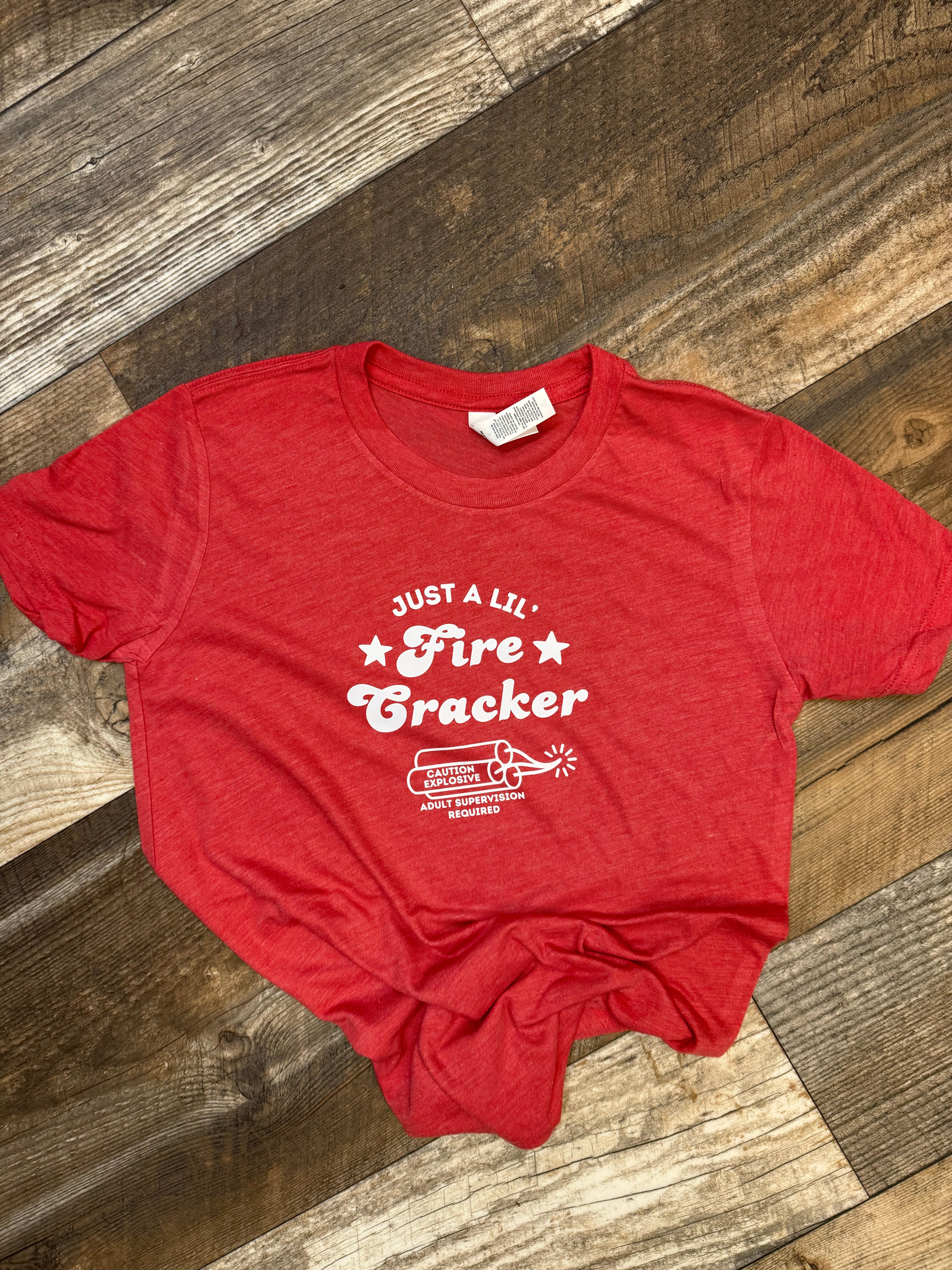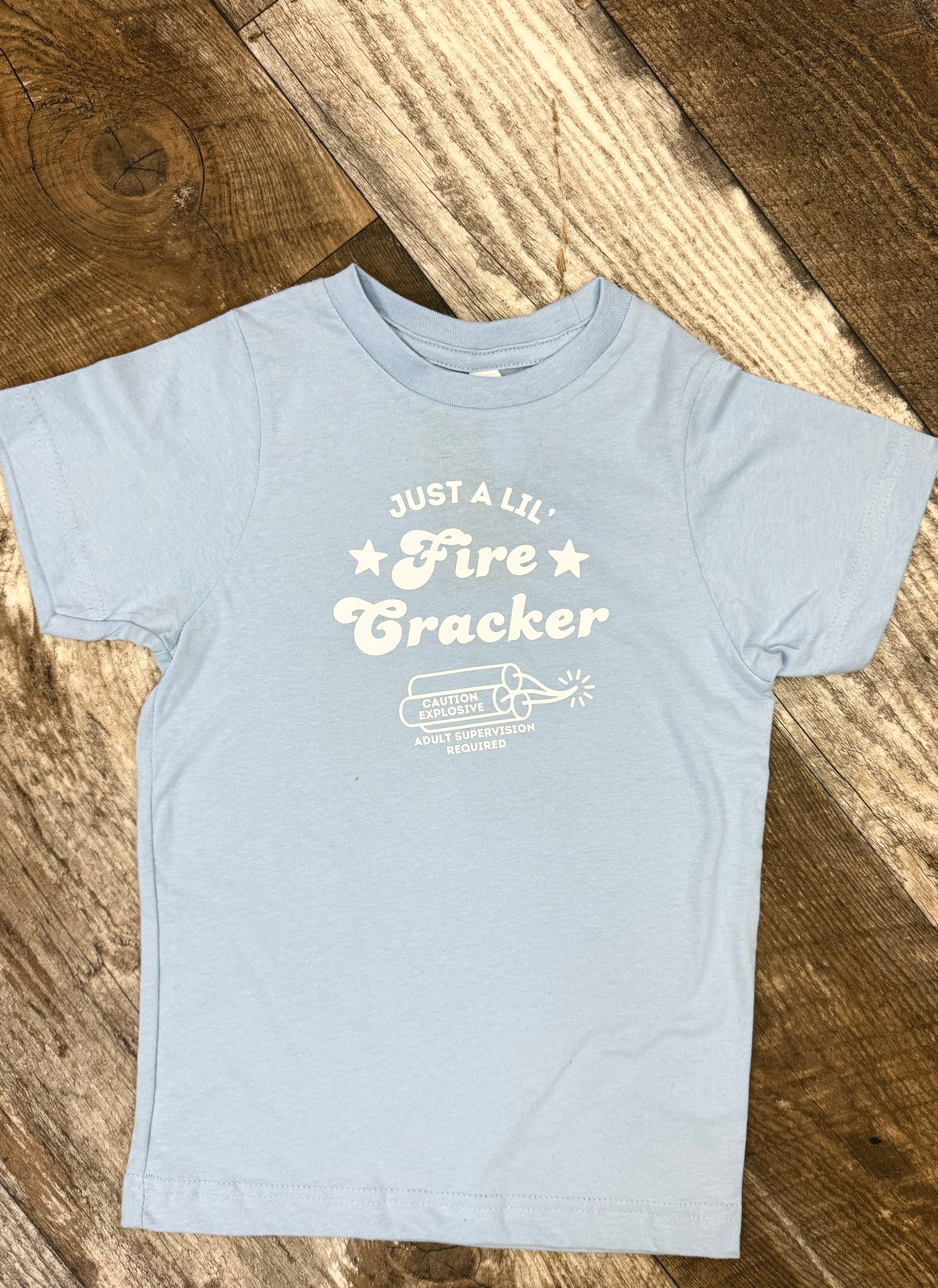 Just a lil Firecracker graphic tee. Kids sizes. Available in light blue, dark blue & red.