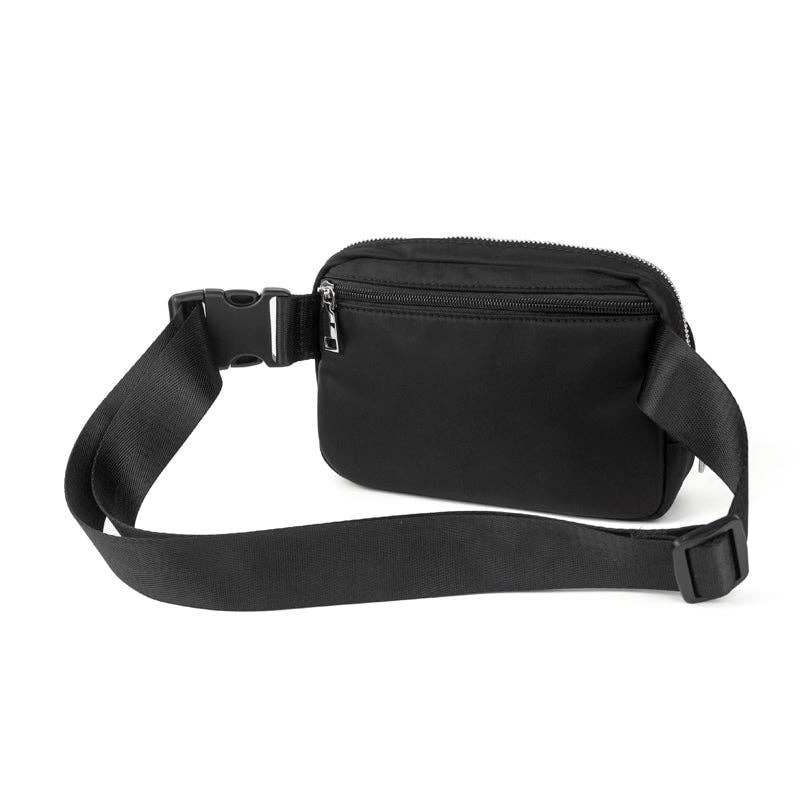 DETAILS: * Can be worn crossbody or around the waist * Made of premium Oxford exceptionally durable & lightweight * Zipper on the top with extra wide opening for easy access * Fully-lined interior with 3 slip pockets on the inside -- great for credit cards, ID cards, etc. * Back of the belt bag has a flat zip compartment large enough for a passport or phone