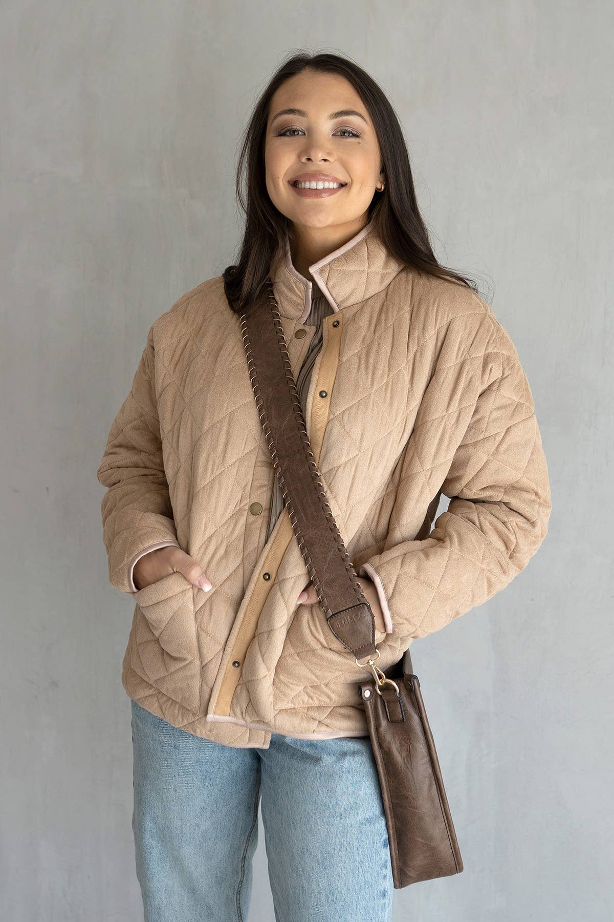 Quilted Jacket w/Pockets - S/M / Taupe is backordered and will ship as soon as it is back in stock.