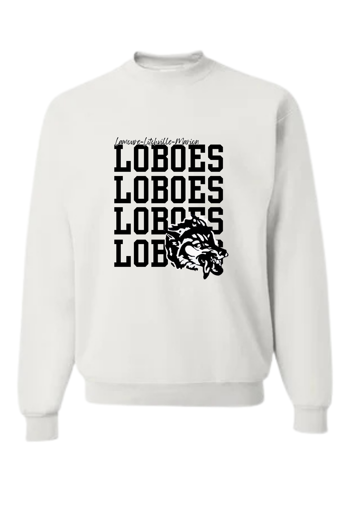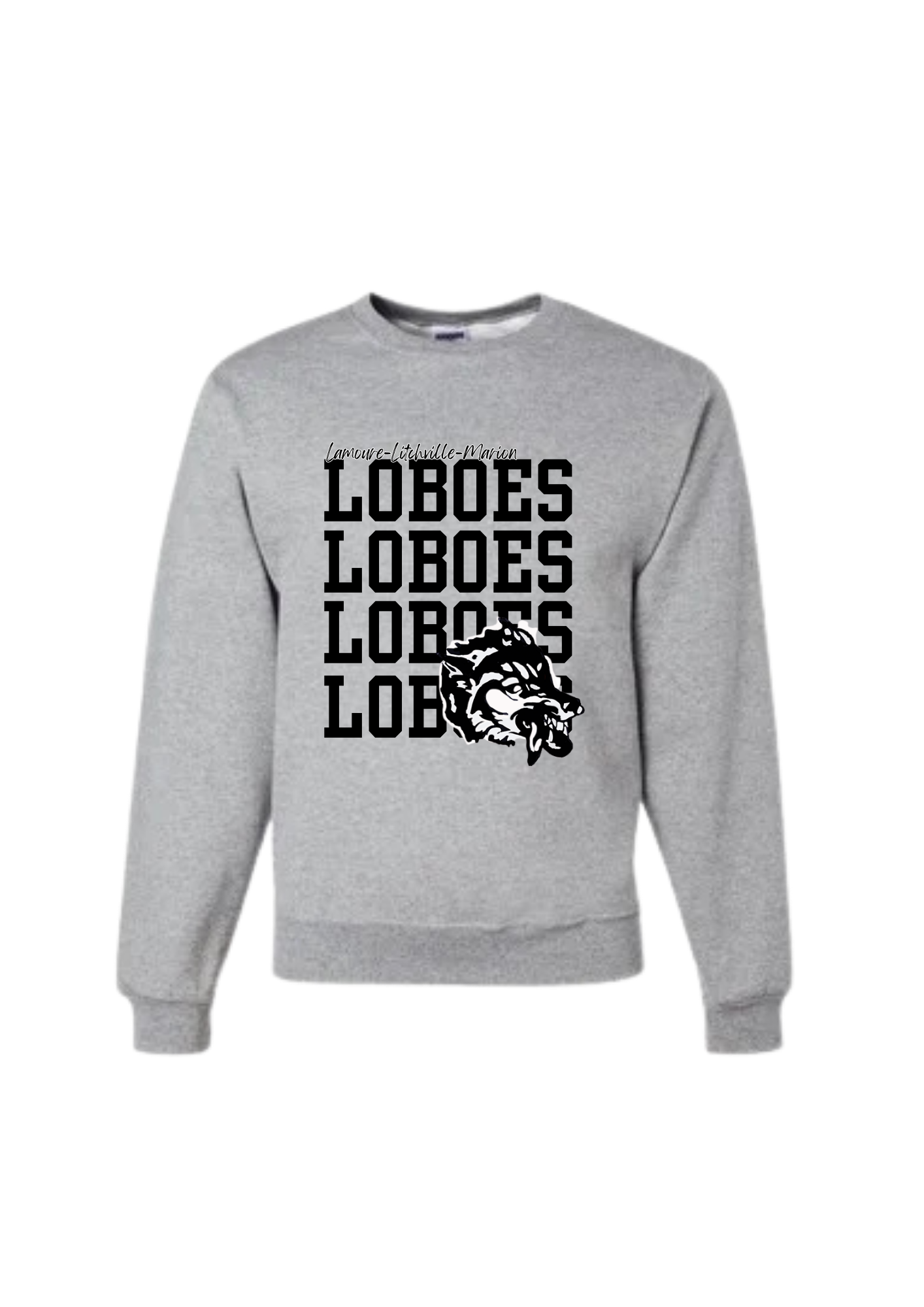 Stacked Loboe Graphic. Available in T-Shirt, Crewneck & Hoodie.