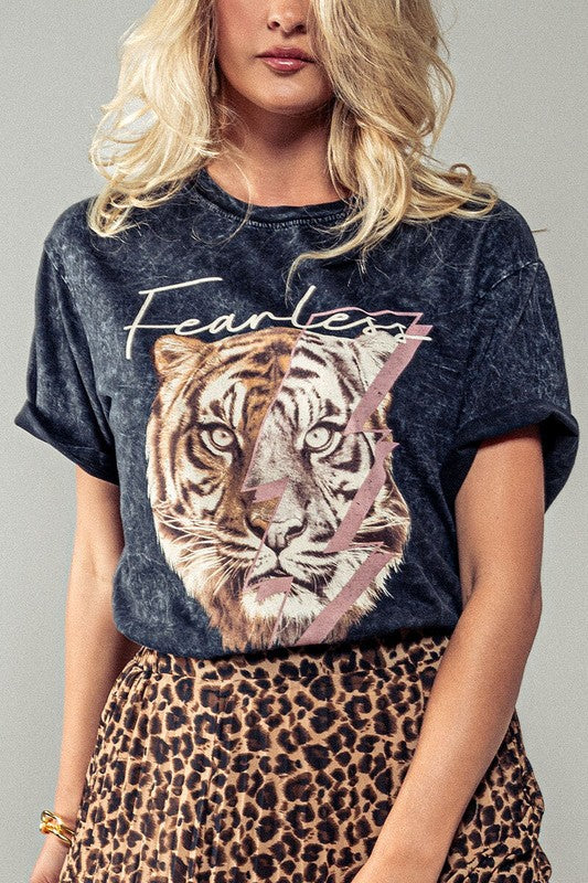 Show off your fearless spirit with our oversized short sleeve tee featuring a striking tiger logo. Made from 100% cotton and available in S-L sizes, this tee is perfect for any occasion. With a round neck line and mineral washed finish, it's both stylish and comfortable. Get yours today and unleash your fierce style! Please note, color may vary slightly due to monitor resolution.