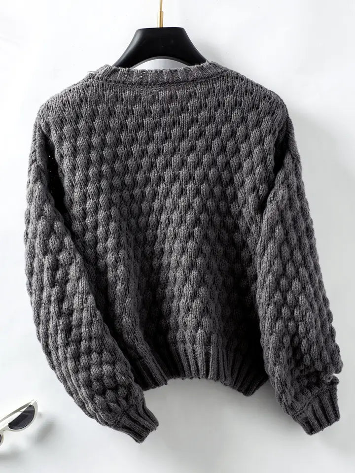 Embrace timeless style with this relaxed-fit crewneck sweater, designed for effortless sophistication. The vintage-inspired silhouette features a distinctive cut-out detail that adds modern edge to classic comfort. Perfect for layering or wearing solo, this piece transitions seamlessly from casual weekends to elevated everyday looks. Crafted for those who appreciate quality basics with character, it's the versatile staple your wardrobe has been missing.